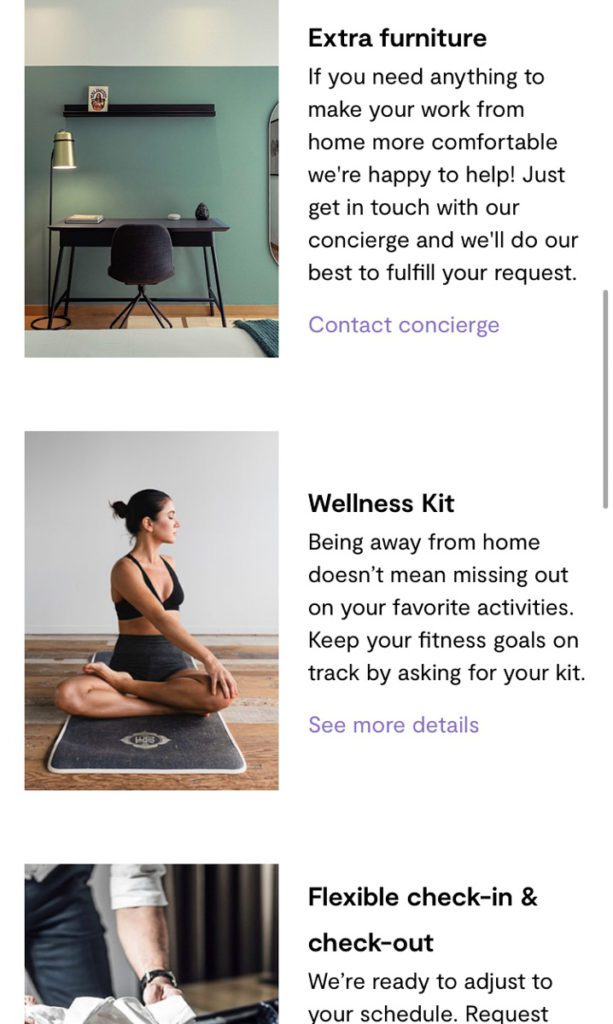 Casai takes their technology to the next level. Their apartments are totally connected. Their apartments have Google home and Chromecast, so you can easily control everything. They also have digital concierge and information services that are super easy to use to find info or request services. Finally, they have digital neighborhood guides for you to get the best out of your stay.